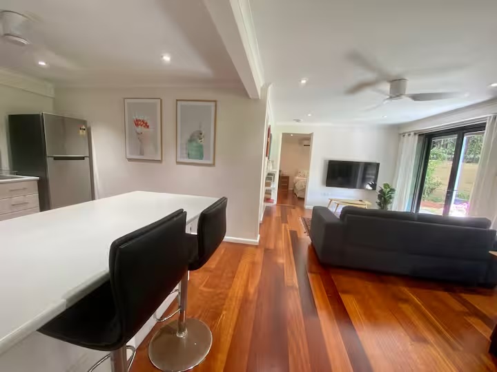 This sensational and spacious one bedroom unit under house has its own full sized kitchen, large bedroom with modern, spacious ensuite and walk-in robe, open plan living/dining area PLUS a separate office.